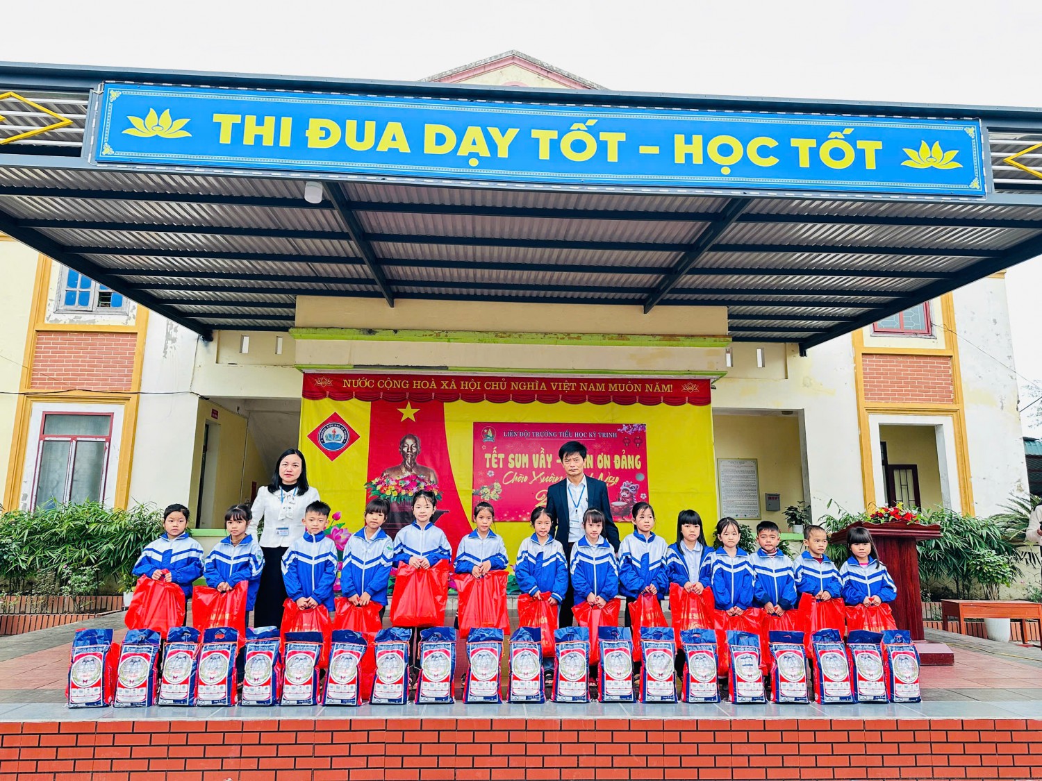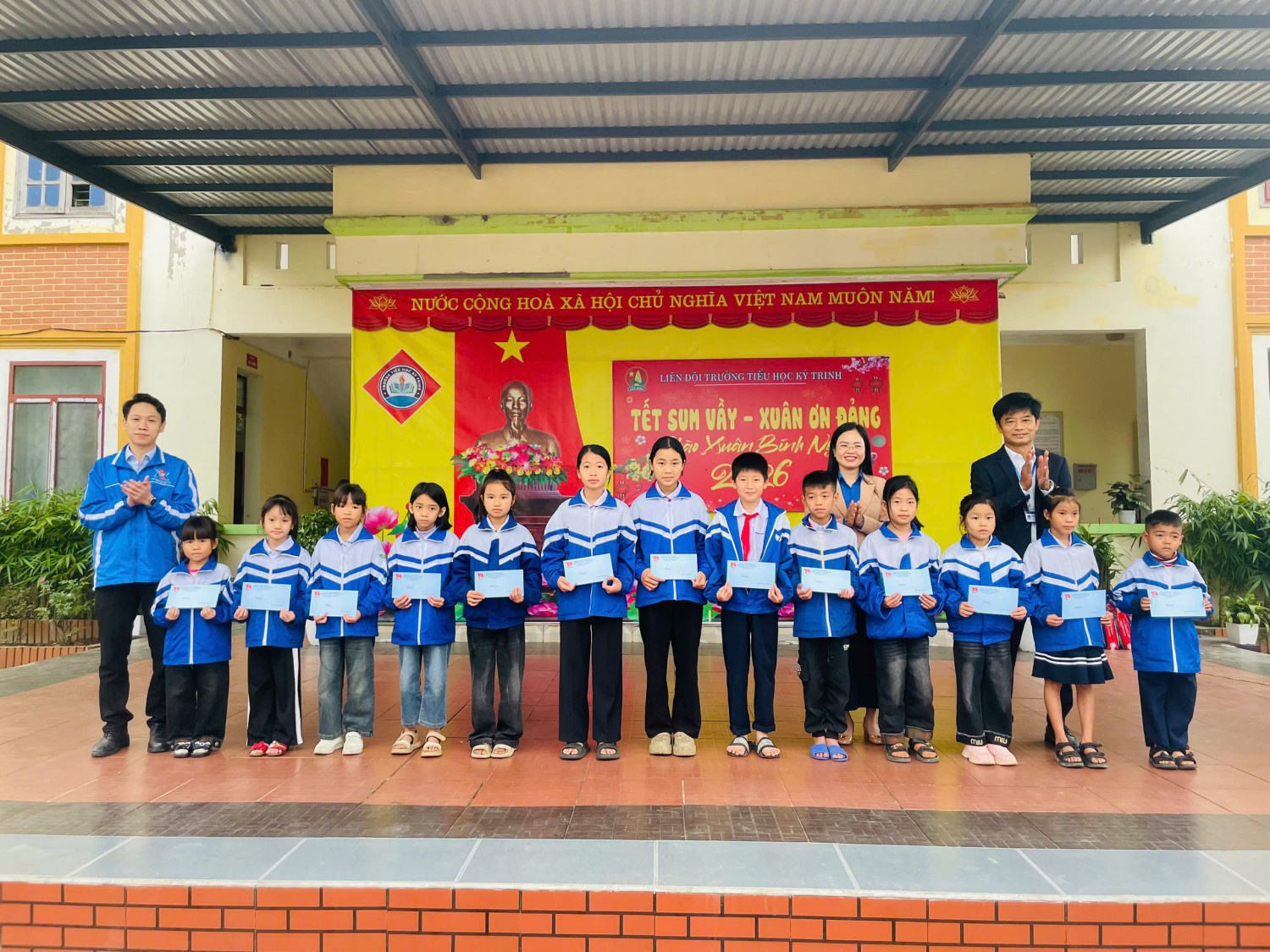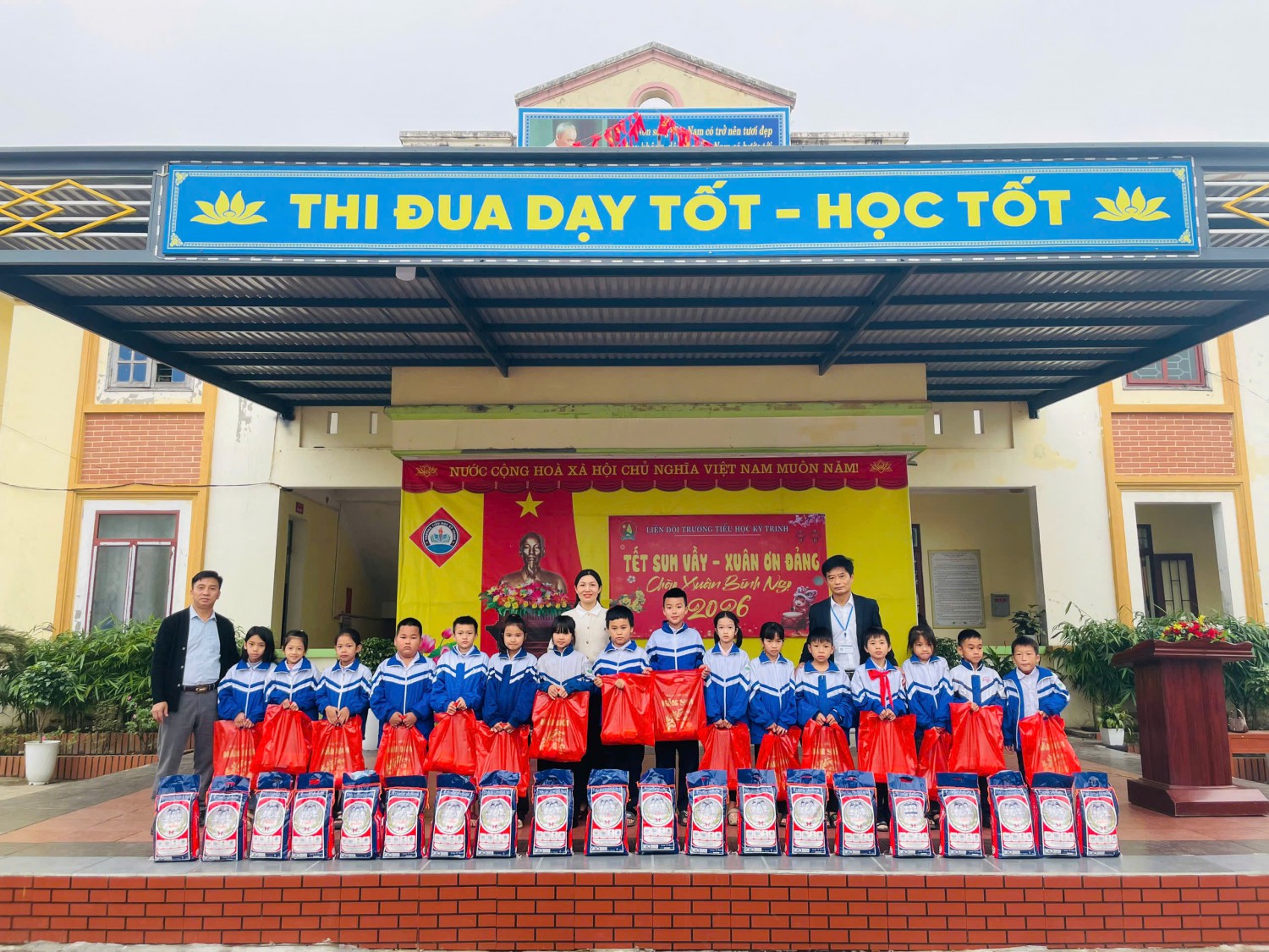 Trong không khí hân hoan chào mừng Kỷ niệm 96 năm Ngày thành lập Đảng Cộng sản Việt Nam (03/02/1930- 03/02/2026); chào mừng thành công tốt đẹp Đại hội Đảng toàn Quốc lần thứ XIV; ấm áp của những ngày đầu xuân mới, sáng ngày 11/02/2026, Trường Tiểu học Kỳ Trinh đã tổ chức chương trình “Tết sum vầy - Xuân ơn Đảng” nhằm sẻ chia yêu thương, mang đến một mùa xuân ấm áp, tươi vui cho các em học sinh có hoàn cảnh khó khăn trong nhà trường.