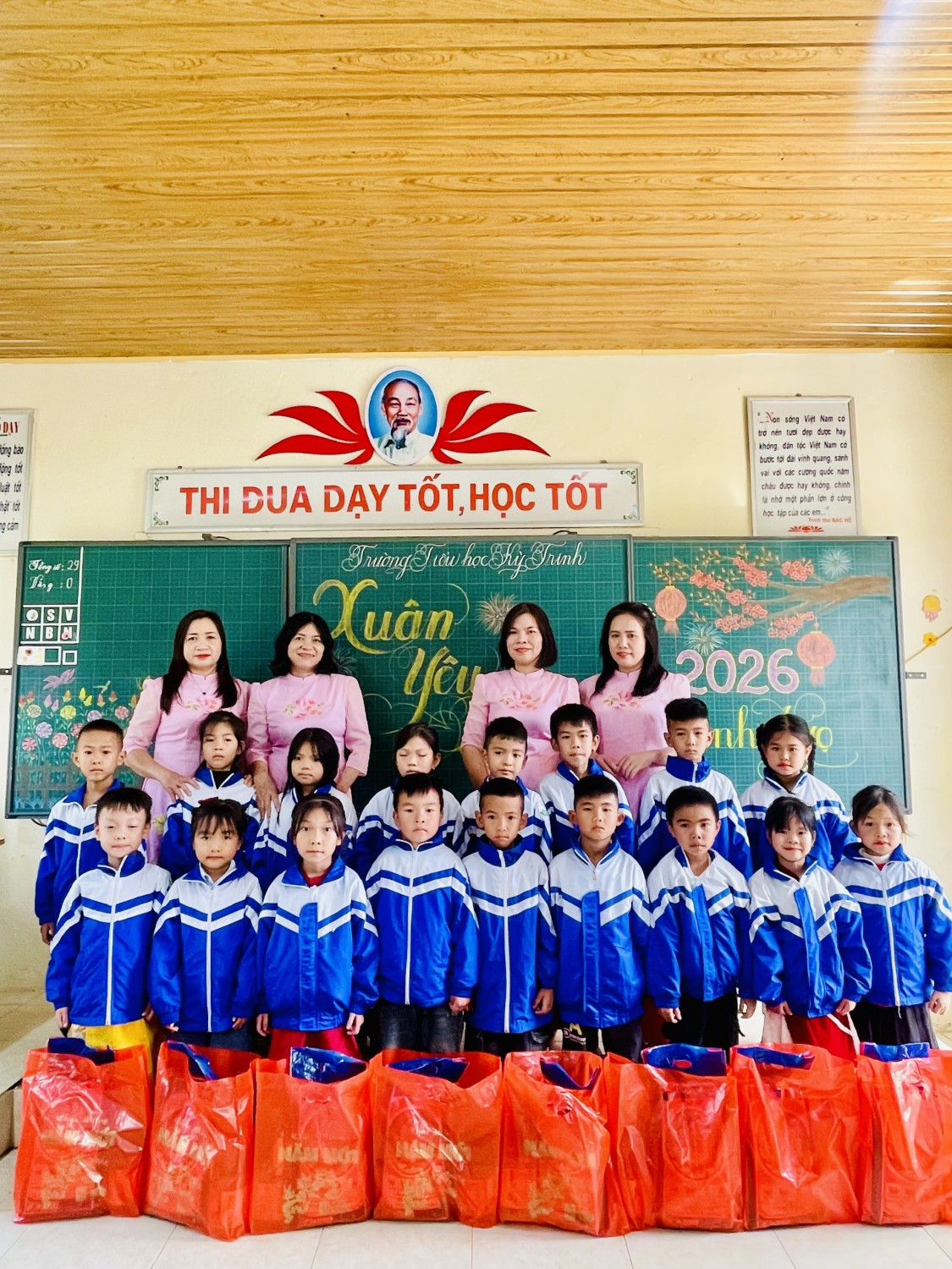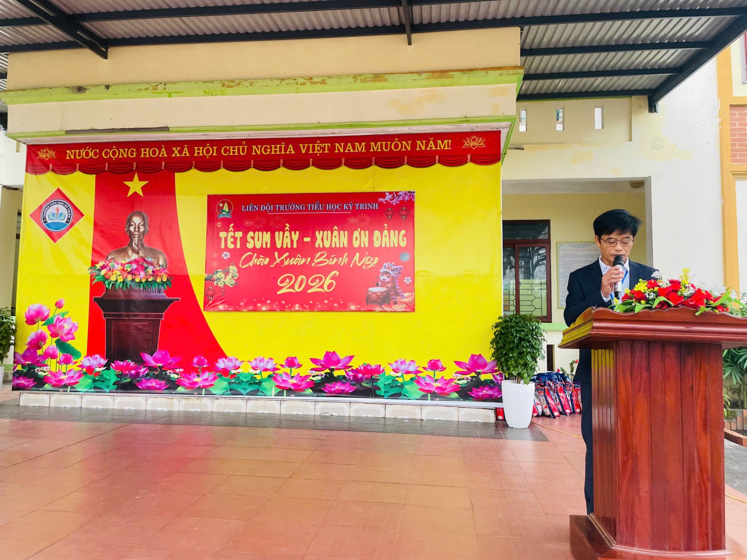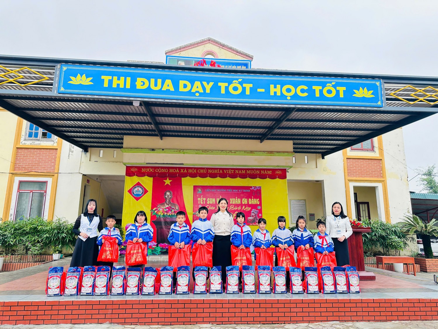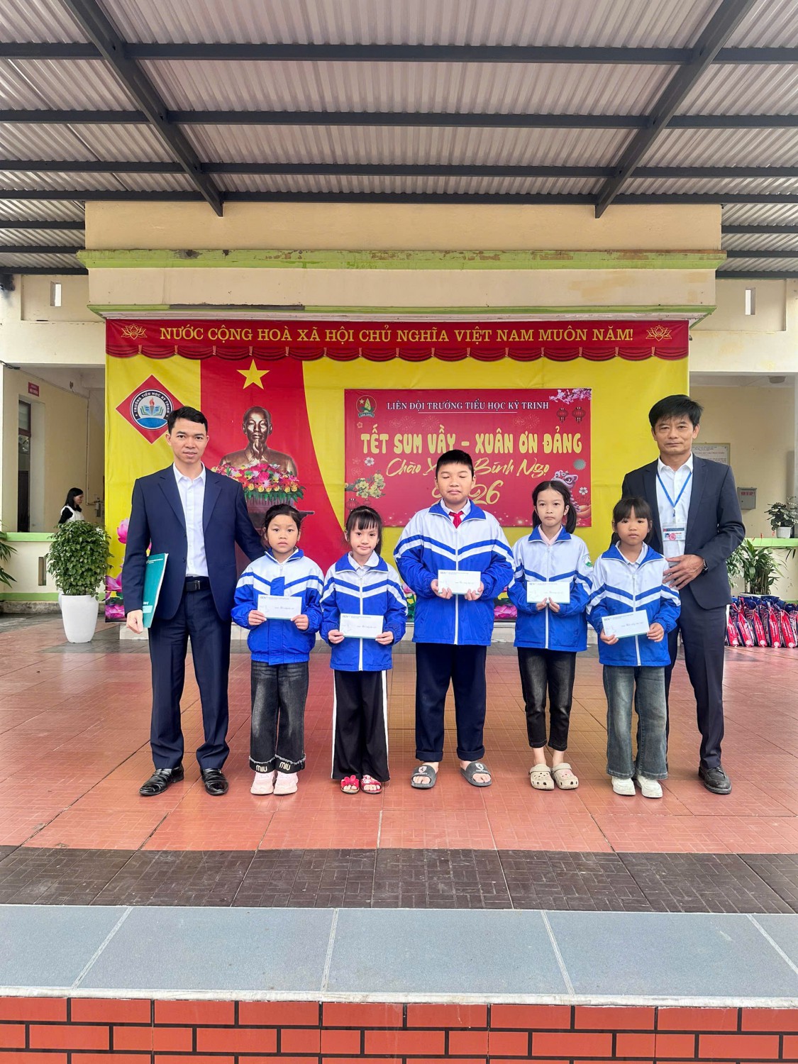 Trong không khí hân hoan chào mừng Kỷ niệm 96 năm Ngày thành lập Đảng Cộng sản Việt Nam (03/02/1930- 03/02/2026); chào mừng thành công tốt đẹp Đại hội Đảng toàn Quốc lần thứ XIV; ấm áp của những ngày đầu xuân mới, sáng ngày 11/02/2026, Trường Tiểu học Kỳ Trinh đã tổ chức chương trình “Tết sum vầy - Xuân ơn Đảng” nhằm sẻ chia yêu thương, mang đến một mùa xuân ấm áp, tươi vui cho các em học sinh có hoàn cảnh khó khăn trong nhà trường.