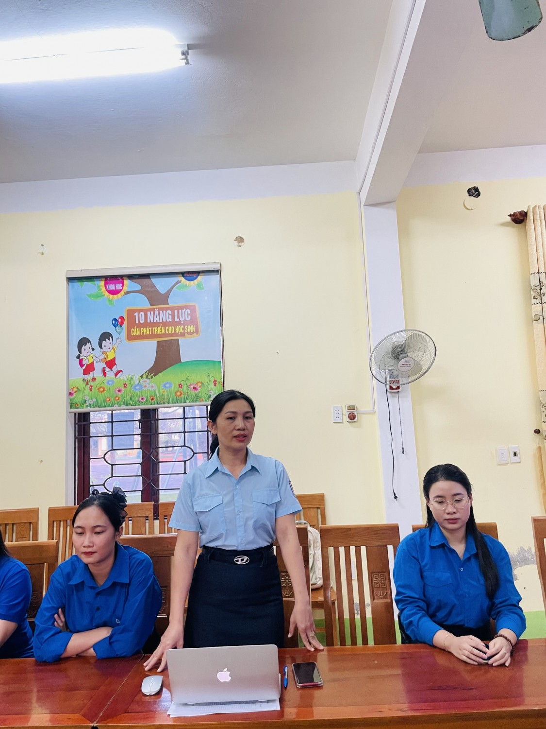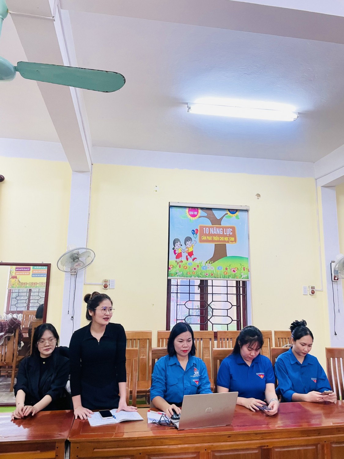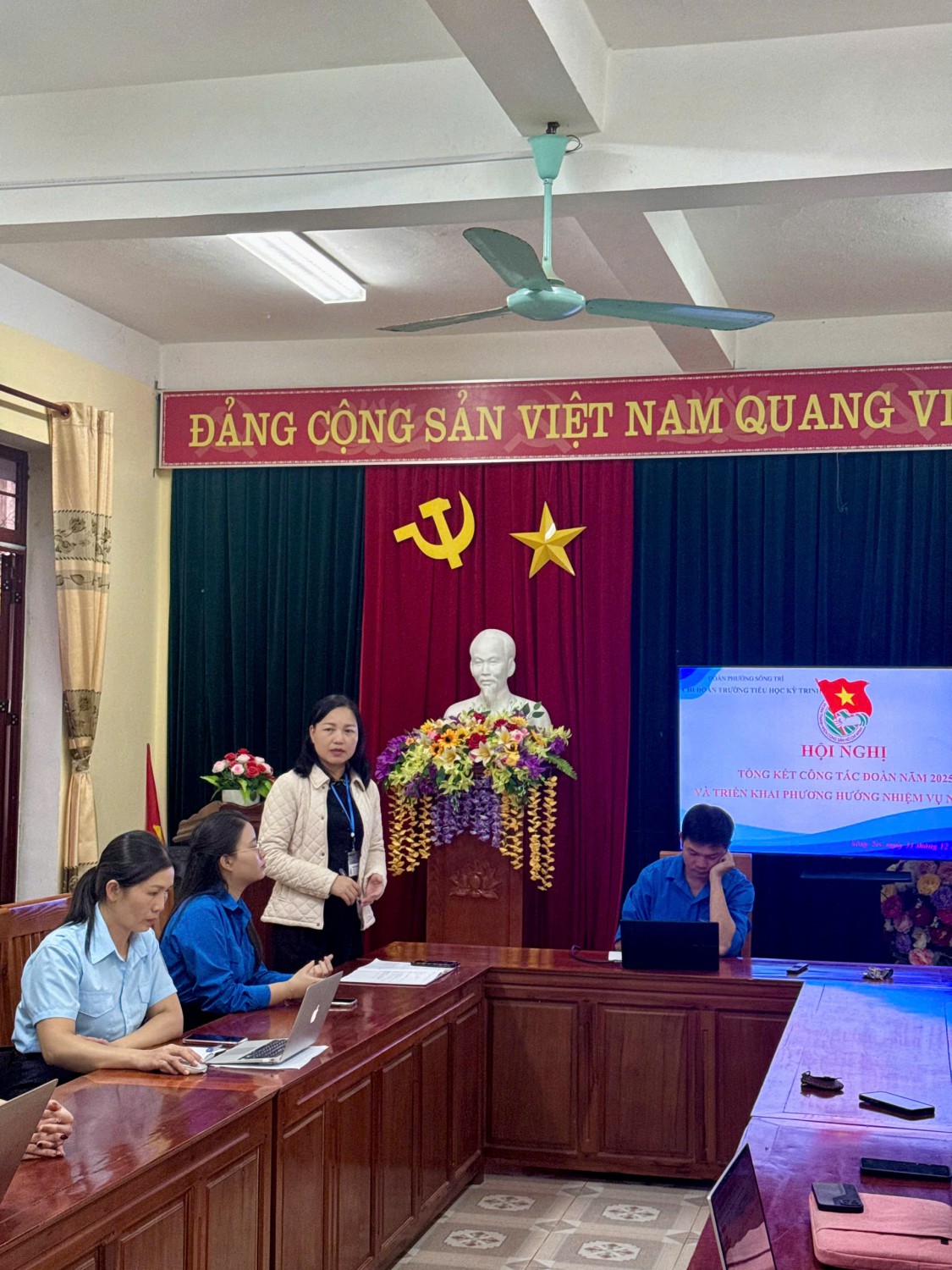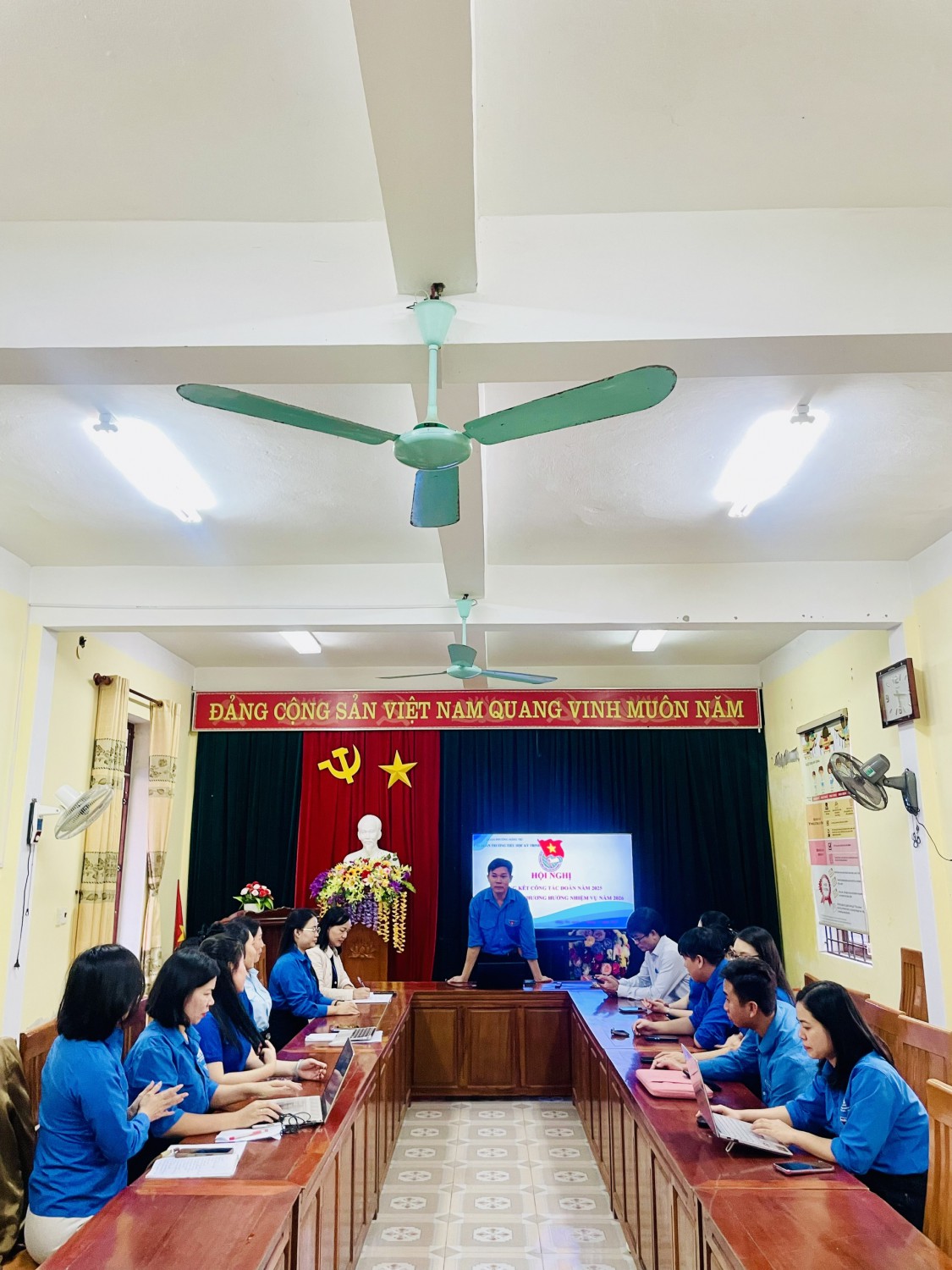 Tham dự hội nghị có đồng chí Trần Minh Đức, Bí thư Chi bộ, hiệu trưởng nhà trường; đồng chí Trần Thị Tường Uyên, đại diện cấp ủy Chi bộ, Phó hiệu trưởng nhà trường; Ban Chấp hành Chi đoàn cùng toàn thể đoàn viên đang sinh hoạt tại Chi đoàn.