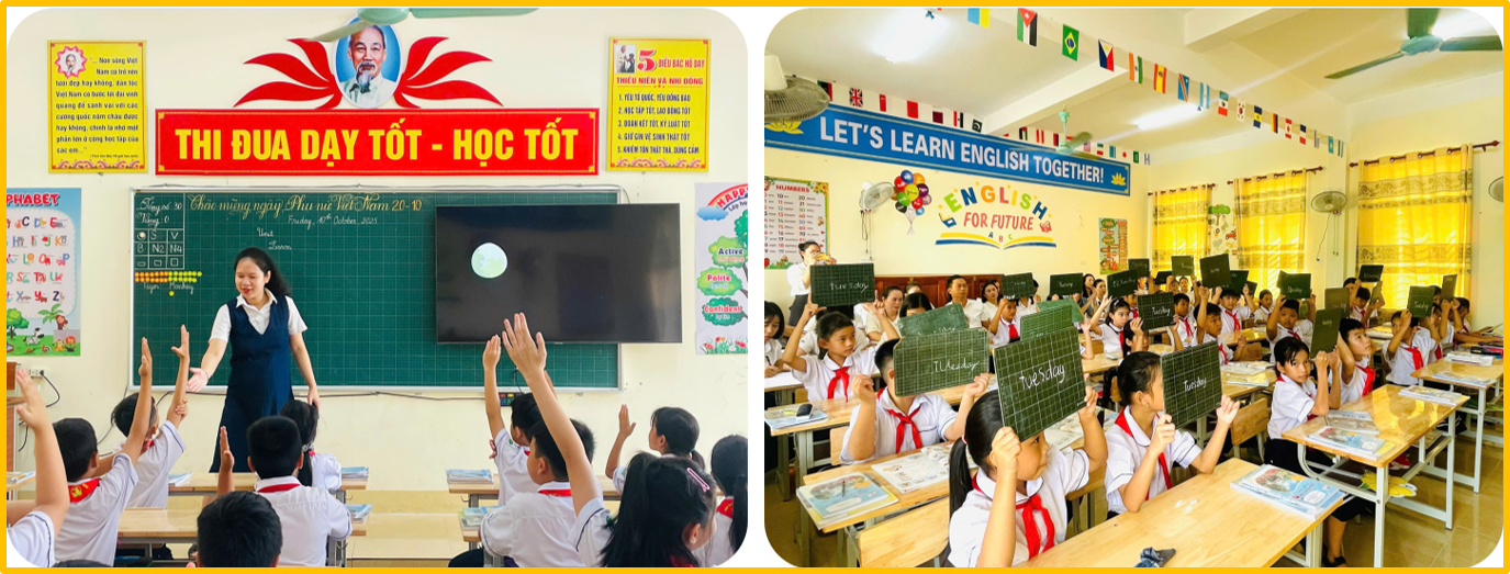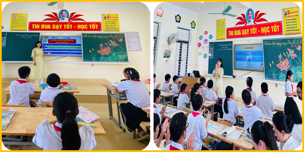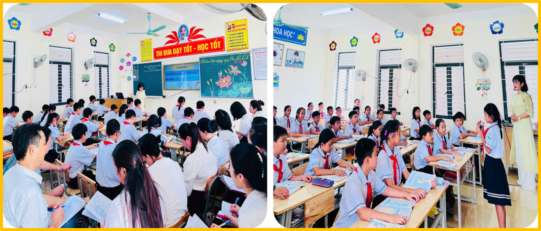 Tại buổi sinh hoạt, cán bộ, giáo viên hai trường tham dự hai tiết dạy minh họa do cô giáo Lê Hằng Nga và Nguyễn Thị Bích Hạnh – giáo viên Trường Tiểu học Kỳ Trinh trực tiếp giảng dạy. Các tiết học diễn ra trong không khí tích cực, sinh động, lấy học sinh làm trung tâm, thể hiện rõ nội dung chuyên đề. Đặc biệt, việc ứng dụng trí tuệ nhân tạo (AI) cùng với phương pháp dạy học tích cực đã mang đến nhiều trải nghiệm mới mẻ, hấp dẫn cho học sinh. Bên cạnh đó, còn tích hợp hiệu quả nội dung giáo dục địa phương và giáo dục an ninh – quốc phòng, giúp học sinh hiểu hơn về quê hương Hà Tĩnh, bồi dưỡng tình yêu đất nước, ý thức bảo vệ Tổ quốc, và tinh thần trách nhiệm của công dân nhỏ tuổi trong thời đại mới.