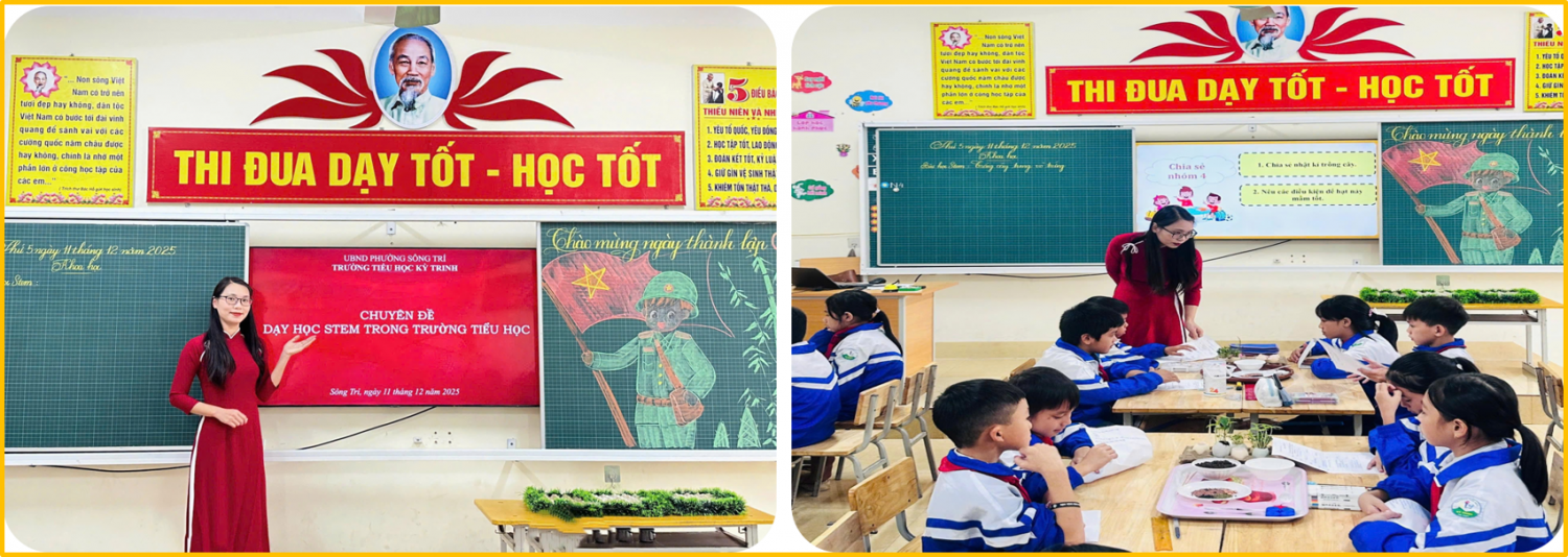 Trong bối cảnh giáo dục hiện nay, giáo dục STEM được xem là một định hướng quan trọng giúp học sinh phát triển tư duy khoa học, khả năng sáng tạo và năng lực giải quyết vấn đề và từ đó giúp học sinh phát triển năng lực, phẩm chất. Nhằm bồi dưỡng chuyên môn và nâng cao năng lực giảng dạy cho đội ngũ giáo viên, chiều ngày 11 tháng 12 năm 2025, Trường Tiểu học Kỳ Trinh đã tổ chức chuyên đề “Dạy học STEM trong trường tiểu học” cho toàn thể giáo viên trong trường.