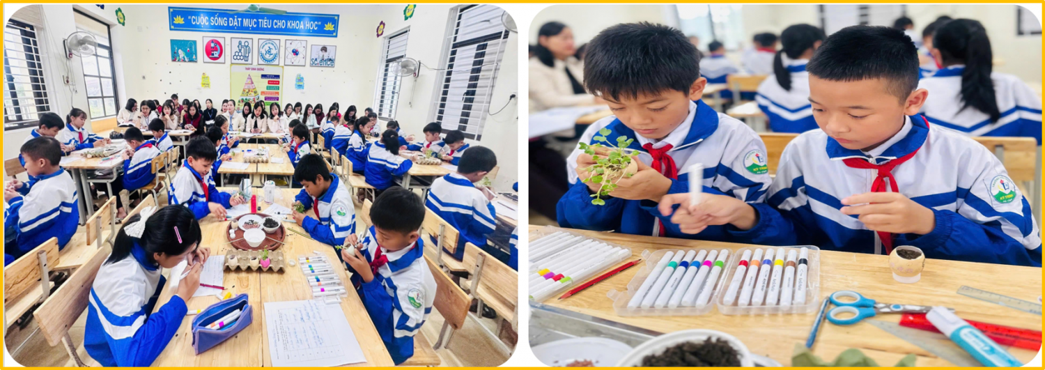 Chuyên đề được triển khai theo mô hình “Lớp học đảo ngược”: giáo viên tự nghiên cứu tài liệu trước, sau đó dự giờ tiết dạy minh họa môn Khoa học lớp 5 với chủ đề STEM “Trồng cây trong vỏ trứng” do cô giáo Nguyễn Thị Hà Trang thực hiện. Tiết dạy thể hiện rõ quy trình tổ chức hoạt động giáo dục STEM ở cấp tiểu học, từ xác định vấn đề – thiết kế giải pháp – thực hành chế tạo – thử nghiệm và báo cáo sản phẩm.